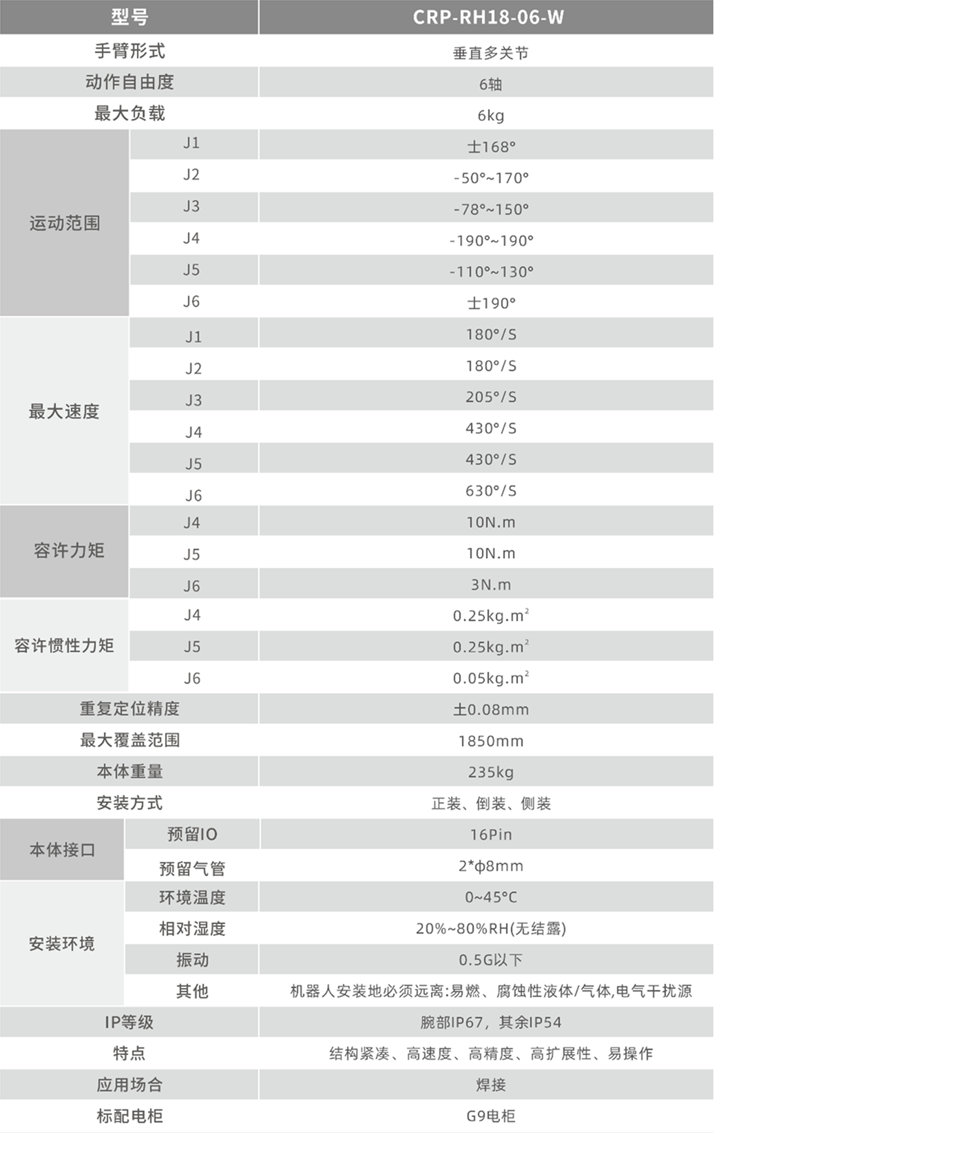 J4、J6轴中空结构,可使用中空焊枪。